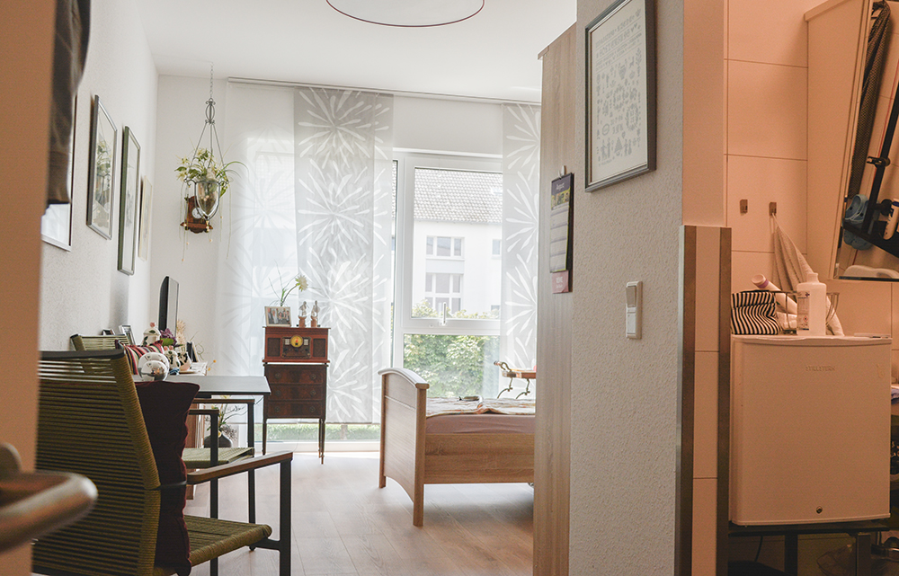 Die großzügigen, barrierefreien Zimmer sind mit allen nötigen technischen Hilfsmittel ausgestattet, um höchste Sicherheit zu gewährleisten, auch wenn die Pflegebedürftigkeit weit fortgeschritten ist.